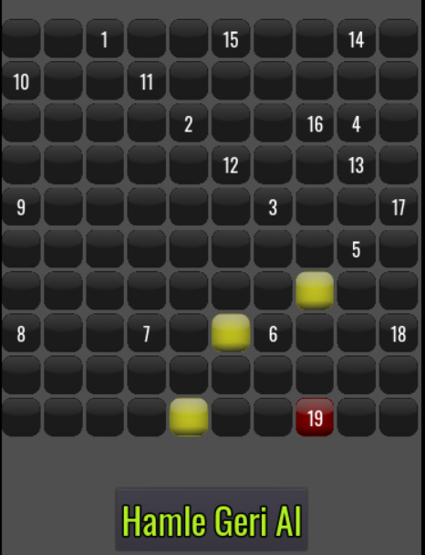 Kural: yukarı-aşağı, sol-sağ ilerlerken 3 adım gidilebiliyor. Çapraz giderken 2 adım gidilebiliyor. Son hamle geri alınabiliyor.