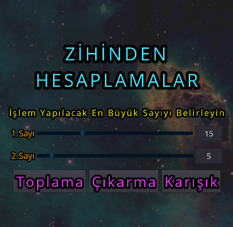 Giriş ekranından seçilen sınırlarda rastgele sayılarla (toplama-çıkarma-karışık) soru geliyor tercihe göre ve doğru cevabı şıklardan seçiyoruz. Arka arkaya verilen her 5 doğru cevapta kutlama alkış sesi çıkıyor.