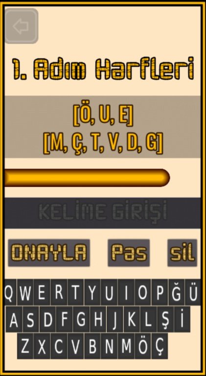 Her adımda verilen kelime havuzundan harfler kullanılarak süre bitmeden kelime türetmeniz gerekli.
